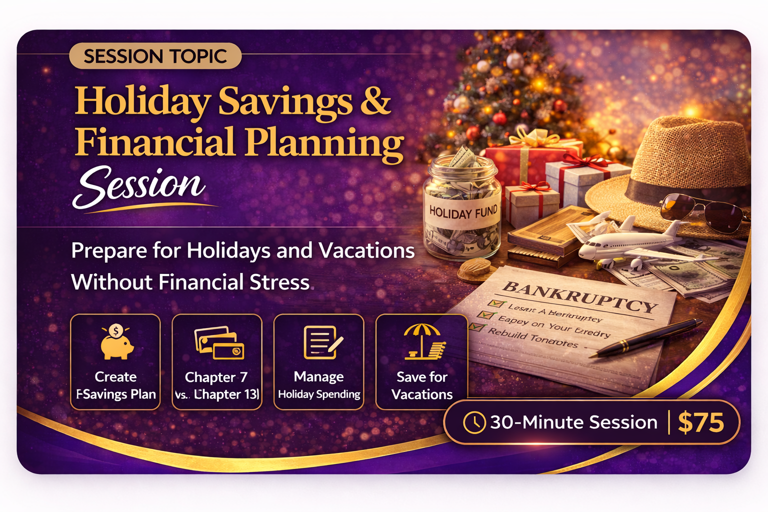 This session helps you plan and save for holidays and vacations without going into debt. We’ll create a realistic savings plan and help you stay financially disciplined while enjoying life.
