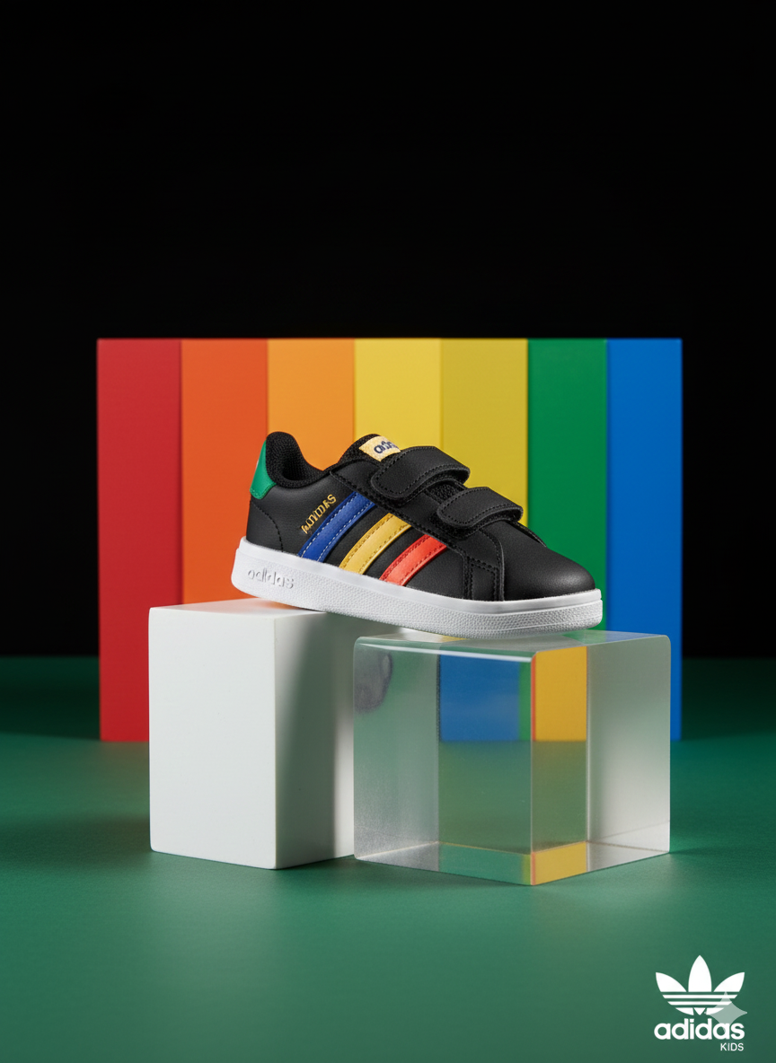 Toddler Velcro Sneakers – Black with Multicolor Stripe Design